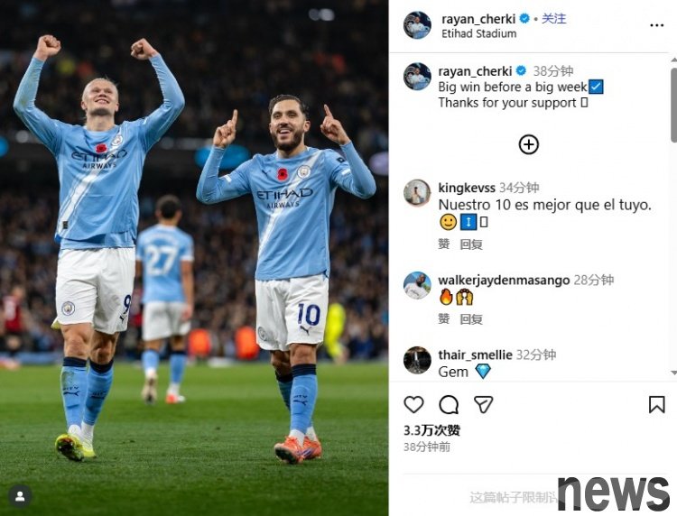 In the 10th round of the 2025-26 Premier League season, Manchester City defeated Bournemouth 3-1. After the game, Shirki, who had 2 assists in the game, celebrated the team's victory on social media.